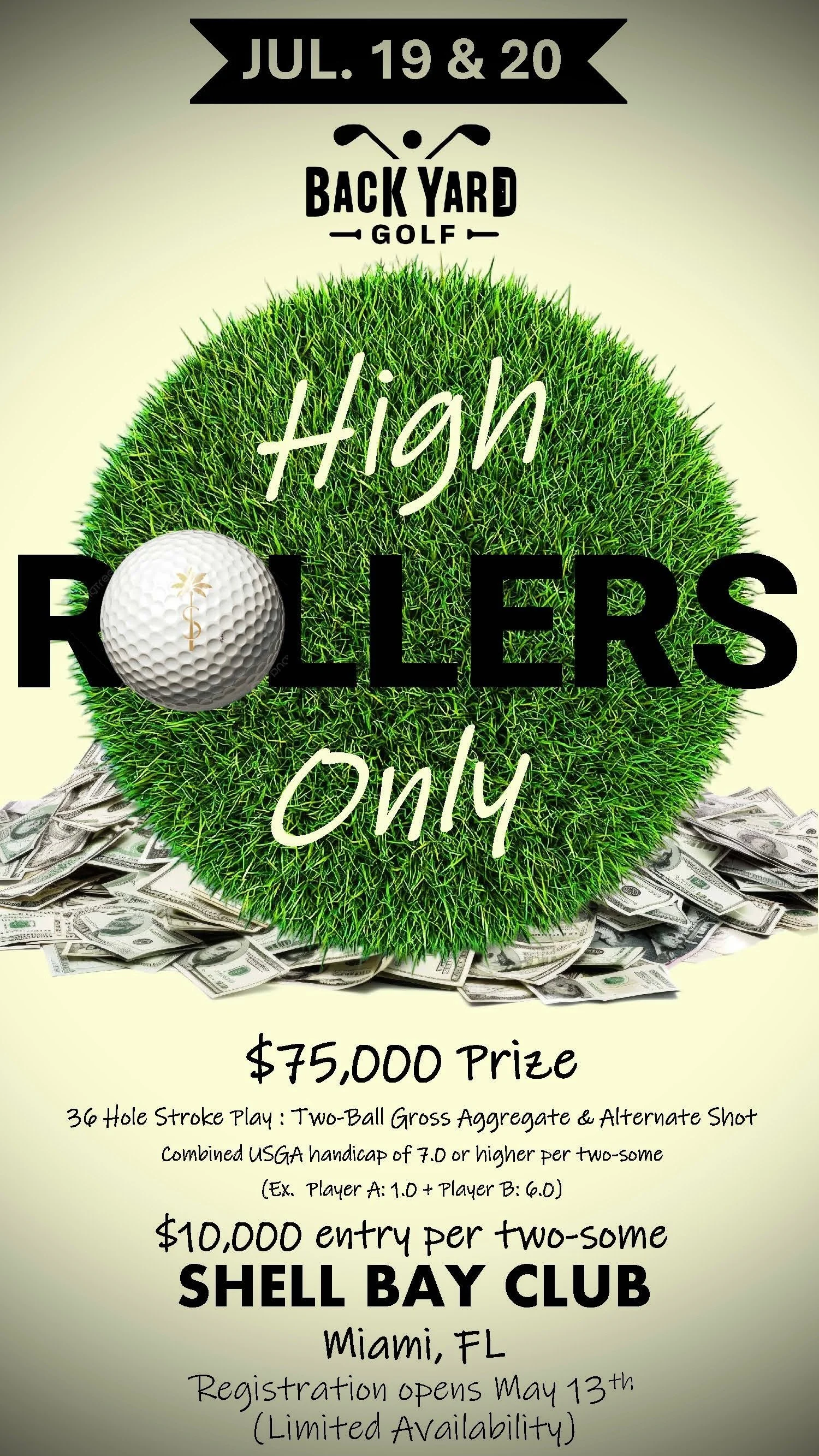 2 man team. Team buy in is $10,000. 36 holes over 2 days.